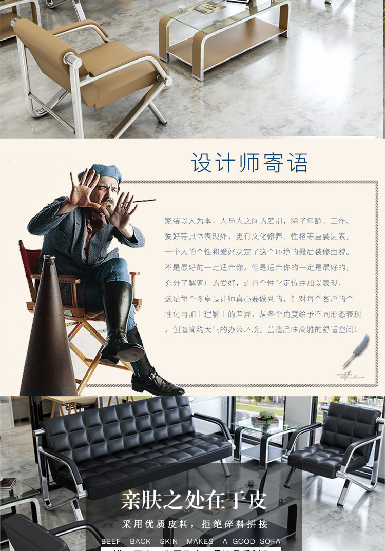 Офисный диван, простой прием, деловой трехместный диван, офисная мебель, модный диван, комбинация журнального столика