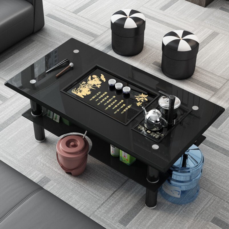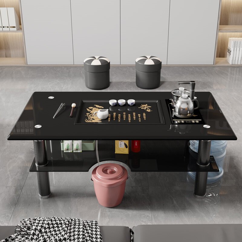 Кунг -фу журнальный столик офис небольшой журнальный столик полный автоматический стеклянный армированный стеклянный волокно -кусочек чай стальной сталь стальной бетон.