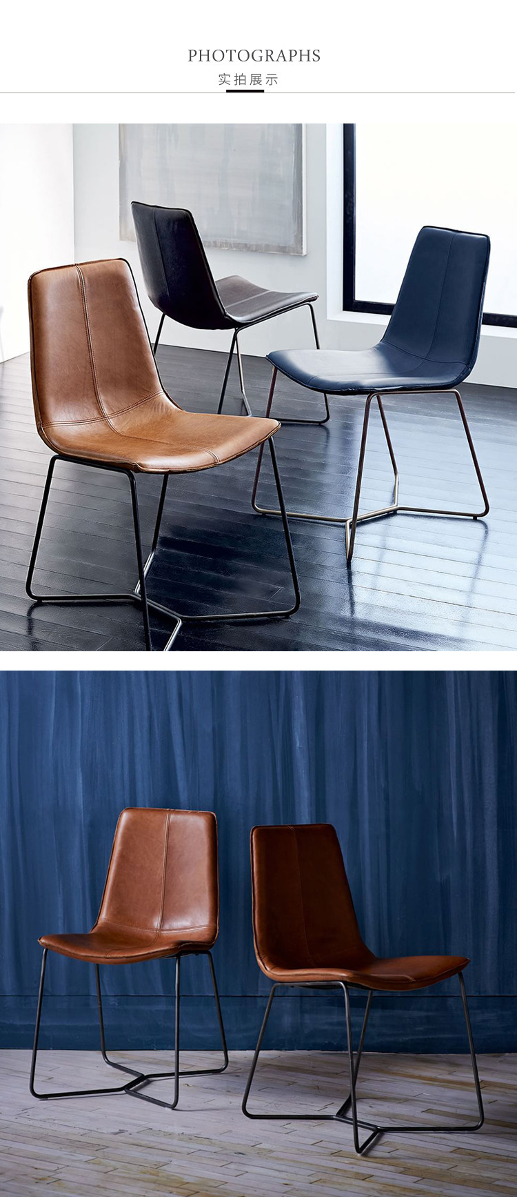 Ins Nordic Light Luxury Designer повседневный стул Loft Retro Iron Modern Минималистская кожаная индустрия