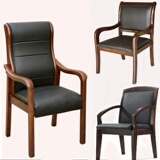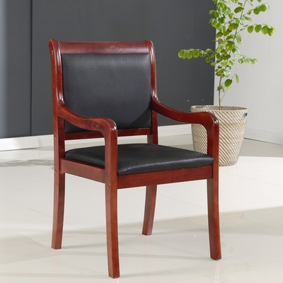 Офисное кресло Деревянное и простая, простая, современная коммерческая кожа с твердым деревом, простая повседневная песня деревянное кресло с подлокотниками