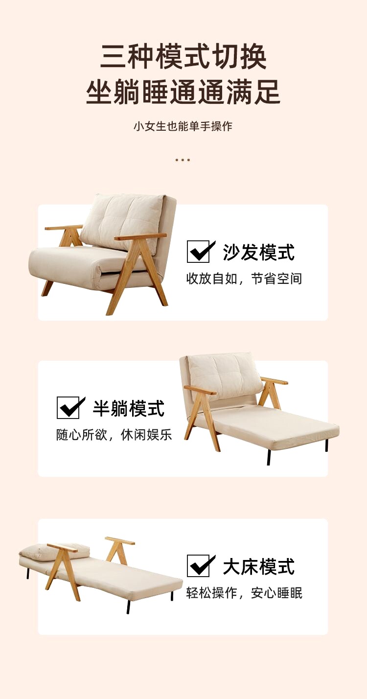 Складной кремовый универсальный диван из натурального дерева для двоих, популярно в интернете