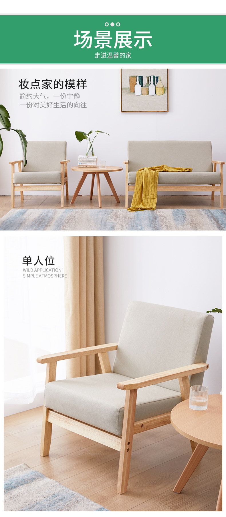 Офисный диван из массива дерева, маленькая квартира, гостиная, ленивый диван, простой бревенчатый стиль, одно кресло, балкон, диван для отдыха