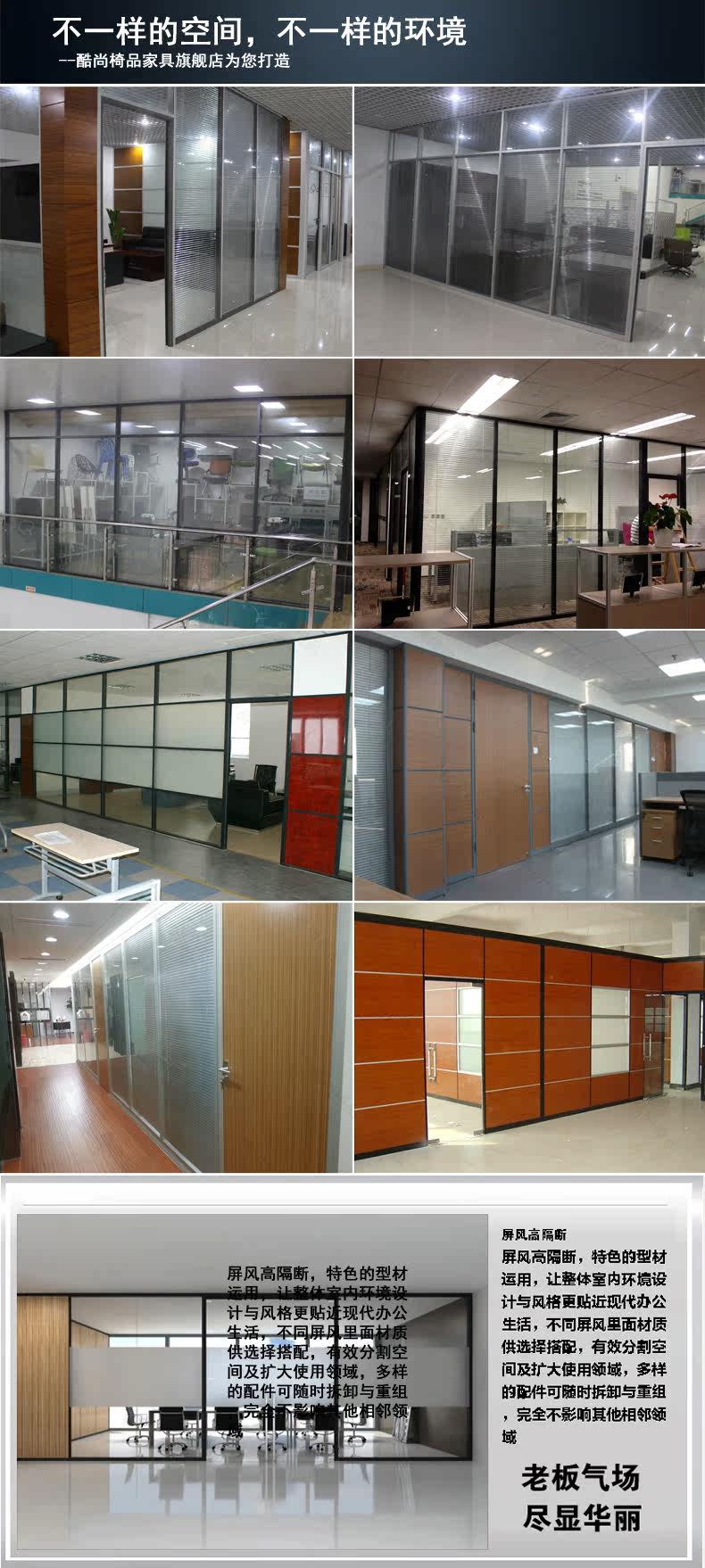 Qingdao Office Перегородка стеклянная перегородка стены алюминиевый сплав высокий отсек двойной слой застряв
