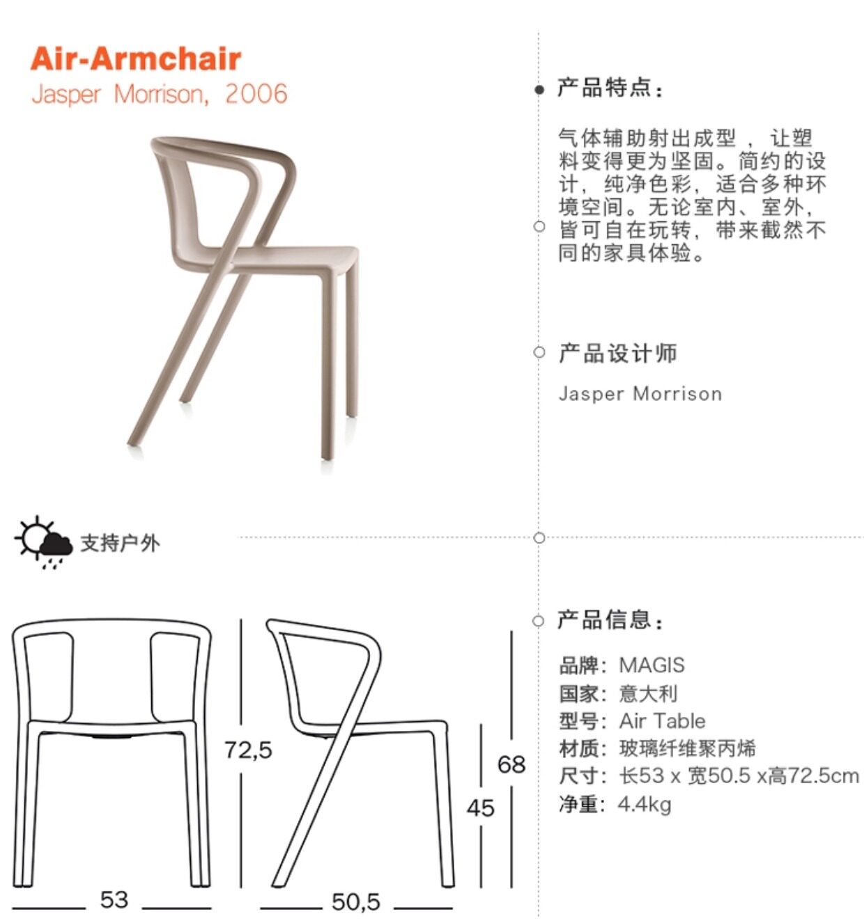 Итальянское импортное кресло Magis Air Air Modern Simple Living Room Room