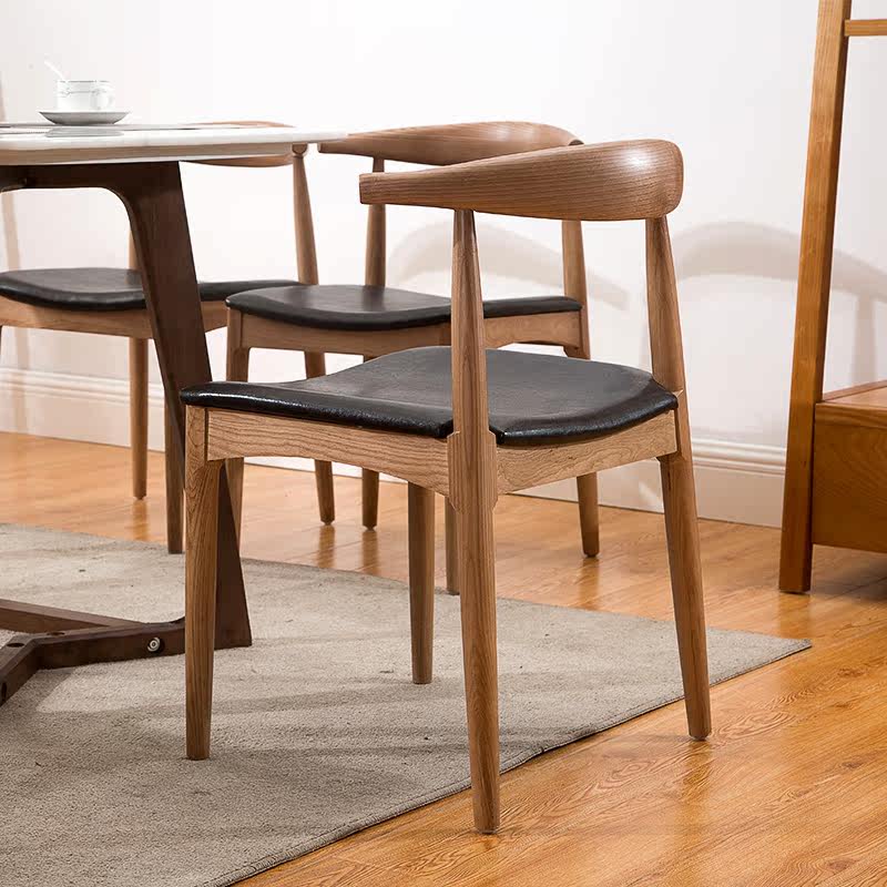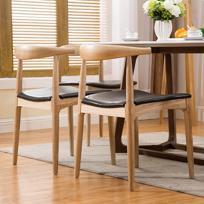 Обеденный стул из массива дерева, простой современный стул в скандинавском стиле, домашний стул со спинкой, роговой стул, ресторанный повседневный обеденный стул для взрослых