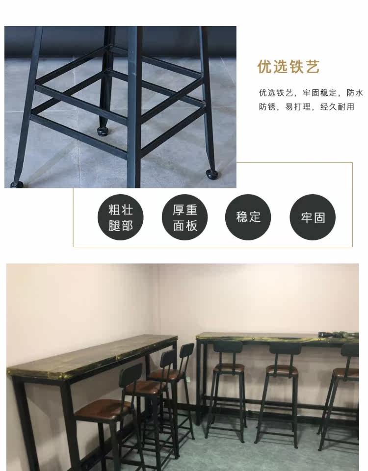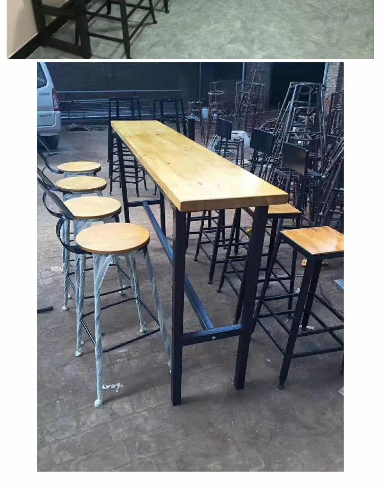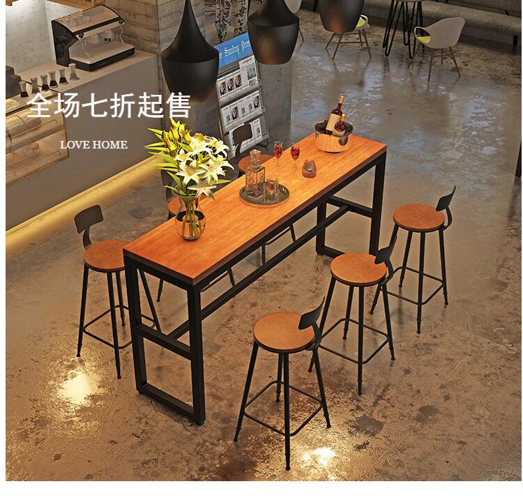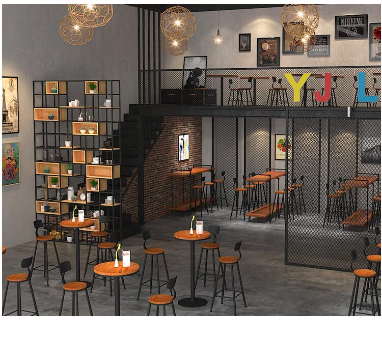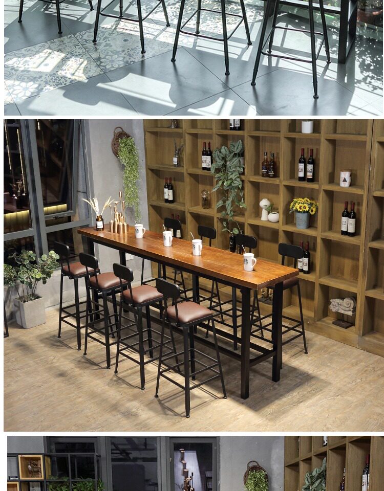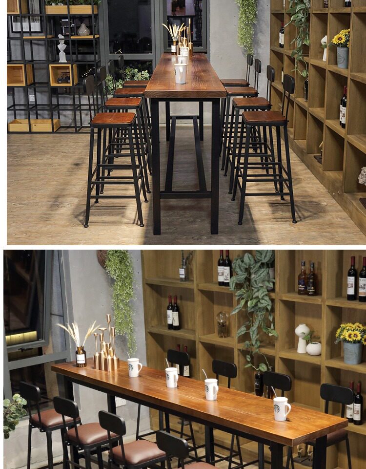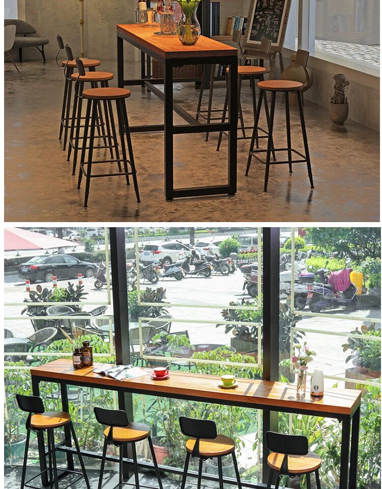 Заблокирован настенным балконом, ретро -бар, стул с твердым деревом, настройка с высоким содержанием стола с высоким табуретом высокой настройки