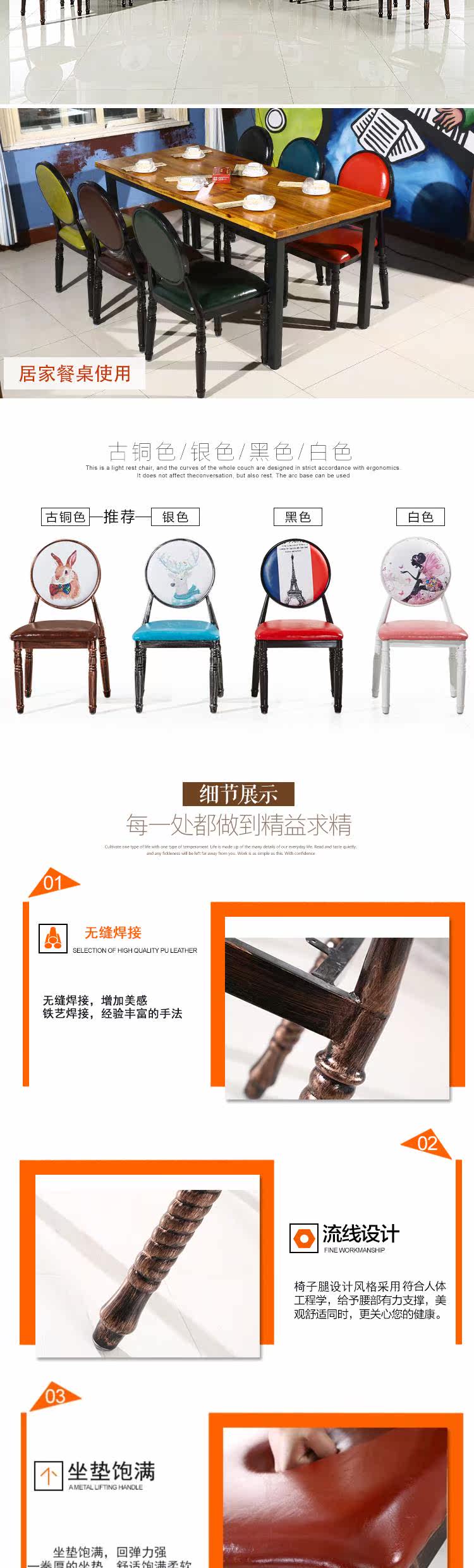 Европейский стиль ногтей на ногте обратно ретро -стул столовой сеть красного креативного железного макияжа Американское обеденное кресло -стул Стул Казуальный стул