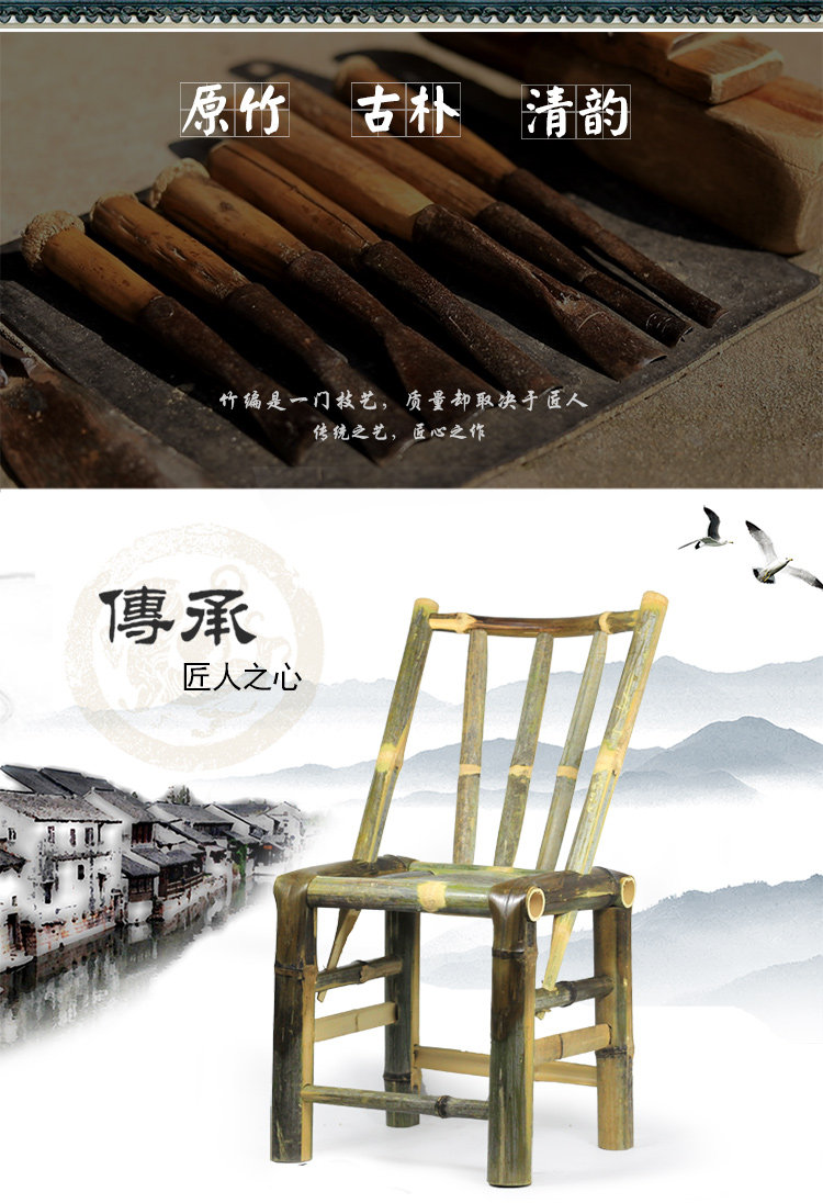 Бамбуковый стул задним стулом, предоставленная старым модным обеденным стулом ретро Тенгту бамбуко