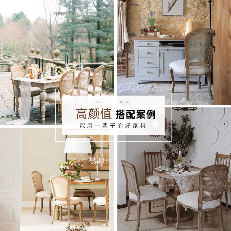 Европейский стиль ретро сплошной дерево обеденный кресло Свадебное фото студию французский B & B & B. Fujiyangwangben Кожаная кожа и дизайнер ретро -стул.