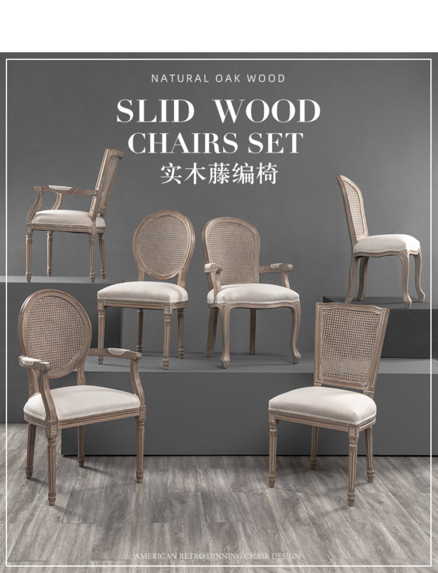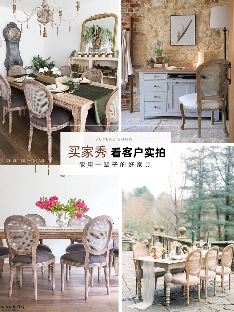 Ретро сплошное дерево столовое кресло американское стиль ротан