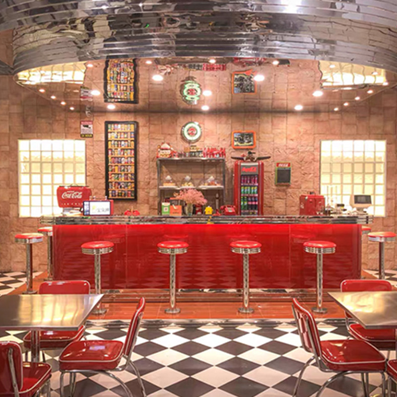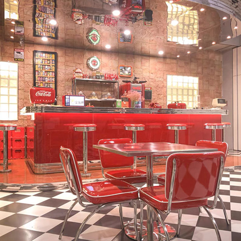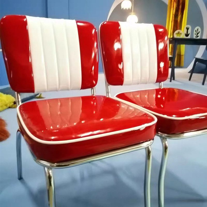 Американский ресторан ретро -ресторан Retro Diner Red Fast Food Stage Стул Бургер Шаг -стул Стул Красное кресло с красной камерой кресло