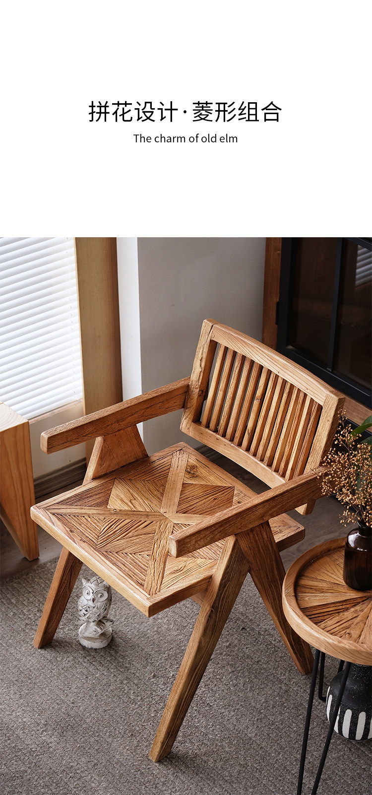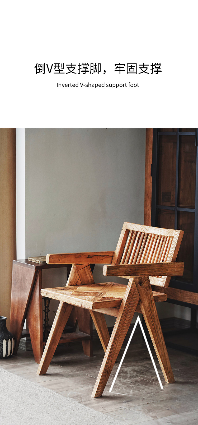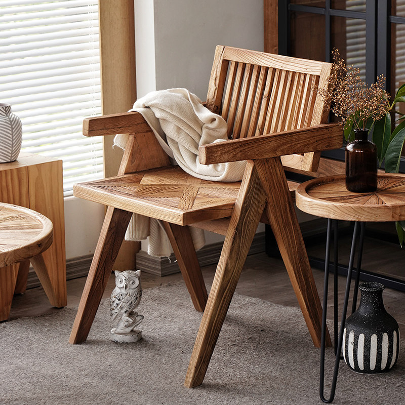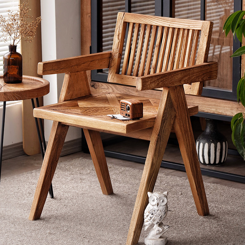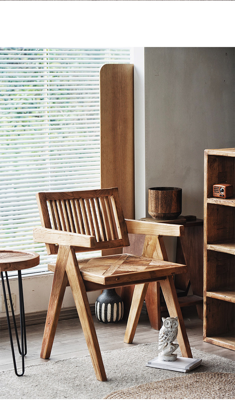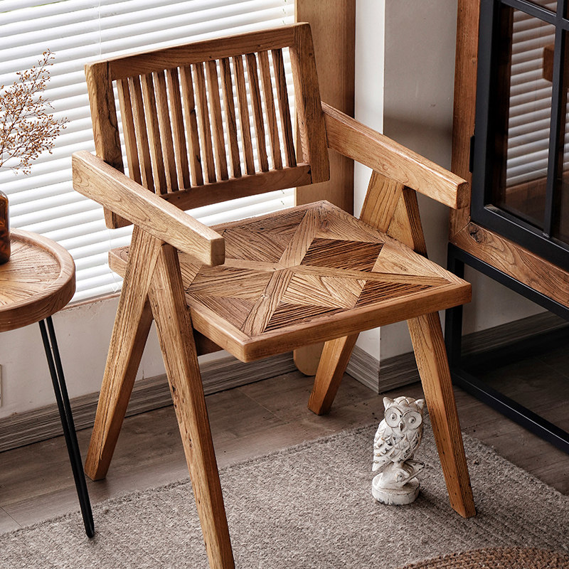 宿藤 Старый вяза Чандигарх Стул Васаби в стиле ретро -задний стул с твердым деревом кресла для домашнего стола Стол Стул