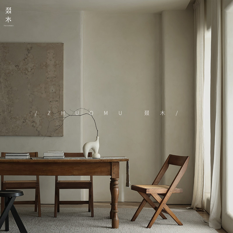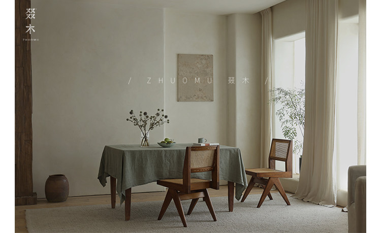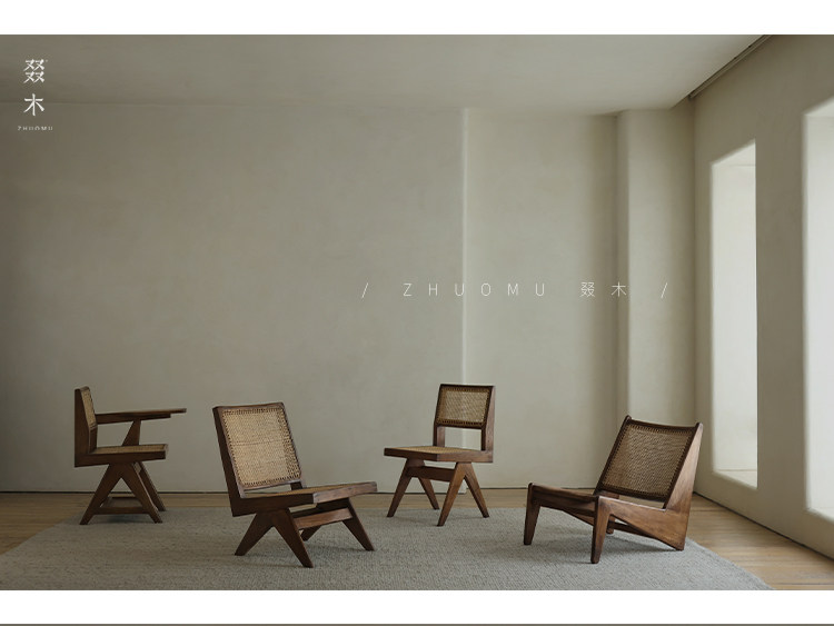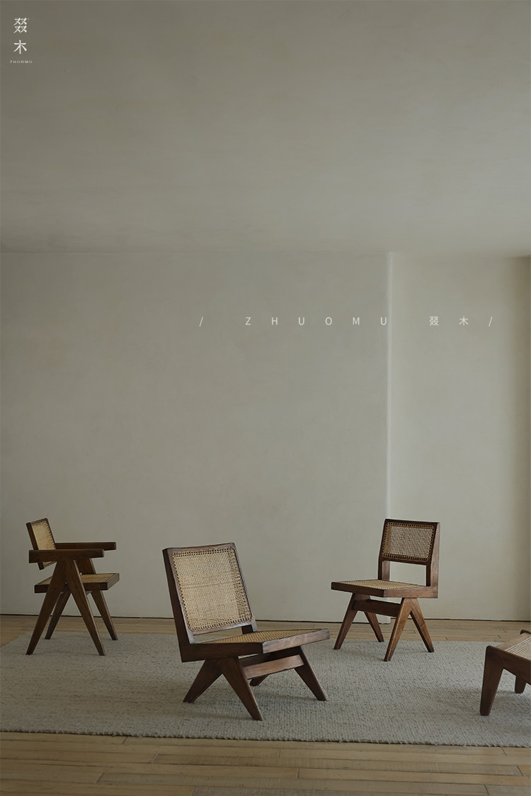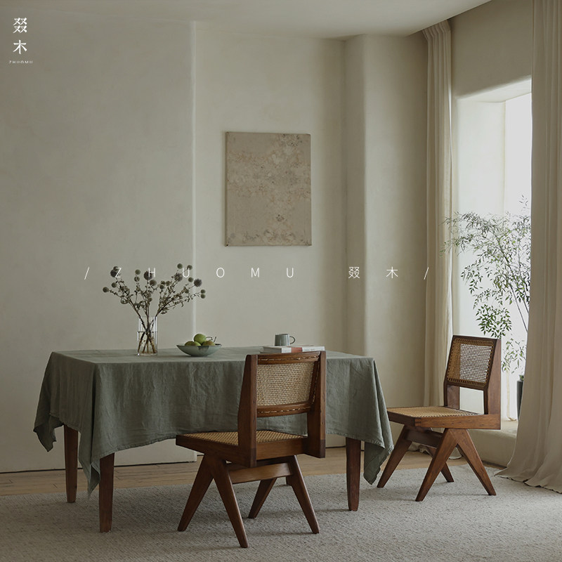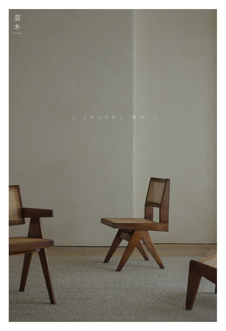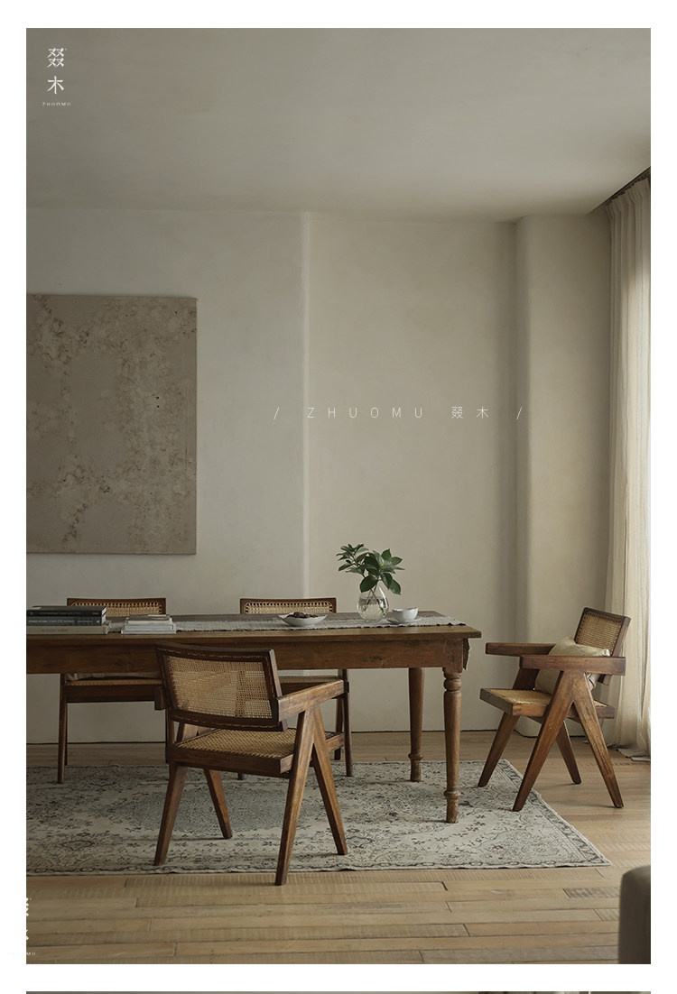 叕木 | Чандигар стул васаби средний стиль обеденный стол и стул ретро Старый твердый древесный роттан повседневный одиночный стул