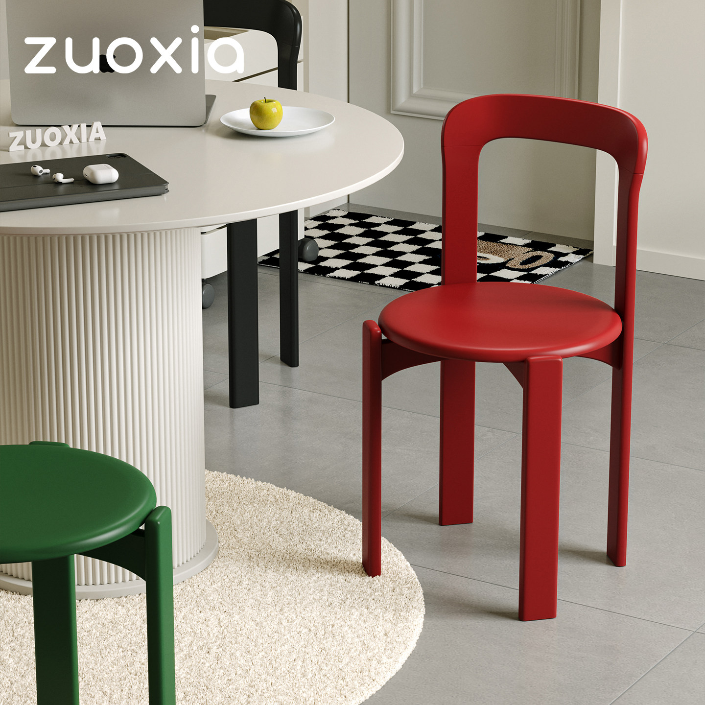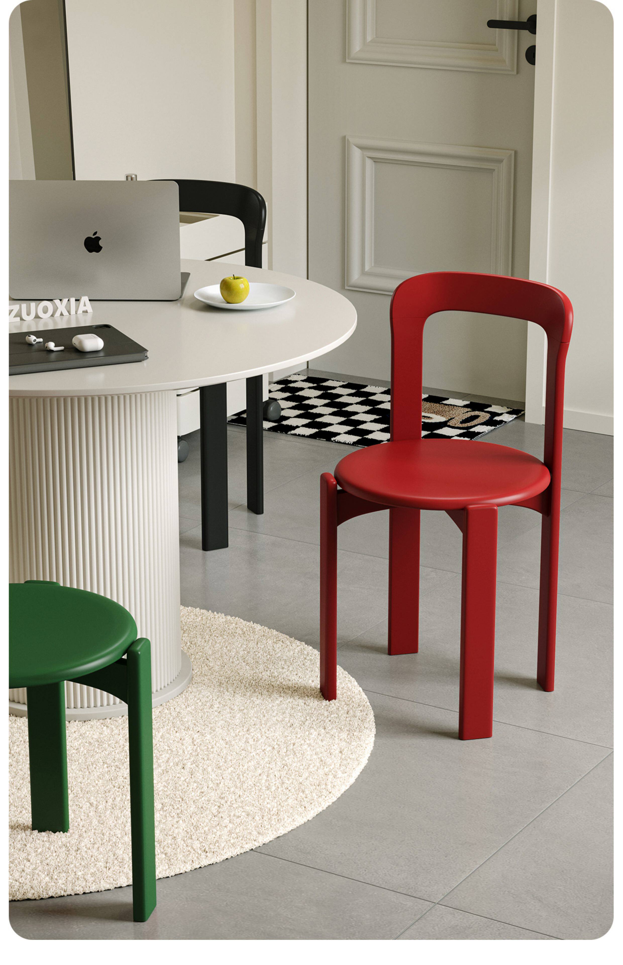 左下 Стул Rey, скандинавский обеденный стул из массива дерева, дизайнерский ретро-гостиная, домашний красный средневековый простой стул для стола