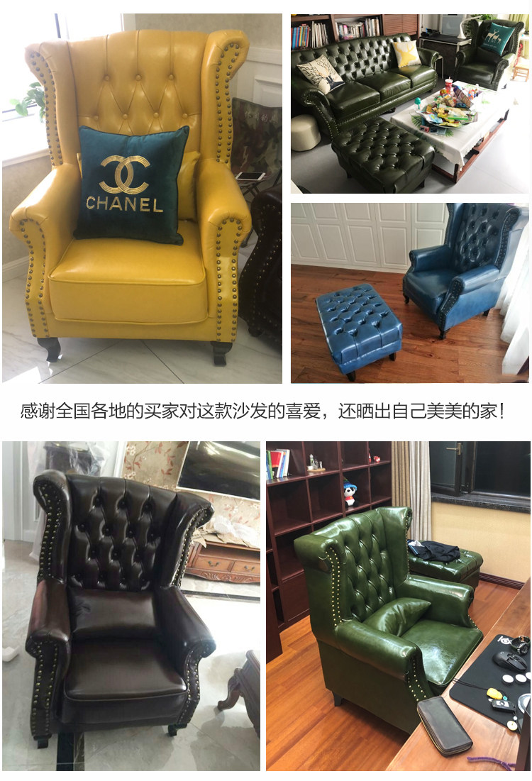 Американская сельская кожаная кожаная диван тигр стул европейский стиль маленькая квартира гостиная спальня спальня с высокой комбинацией стула стула