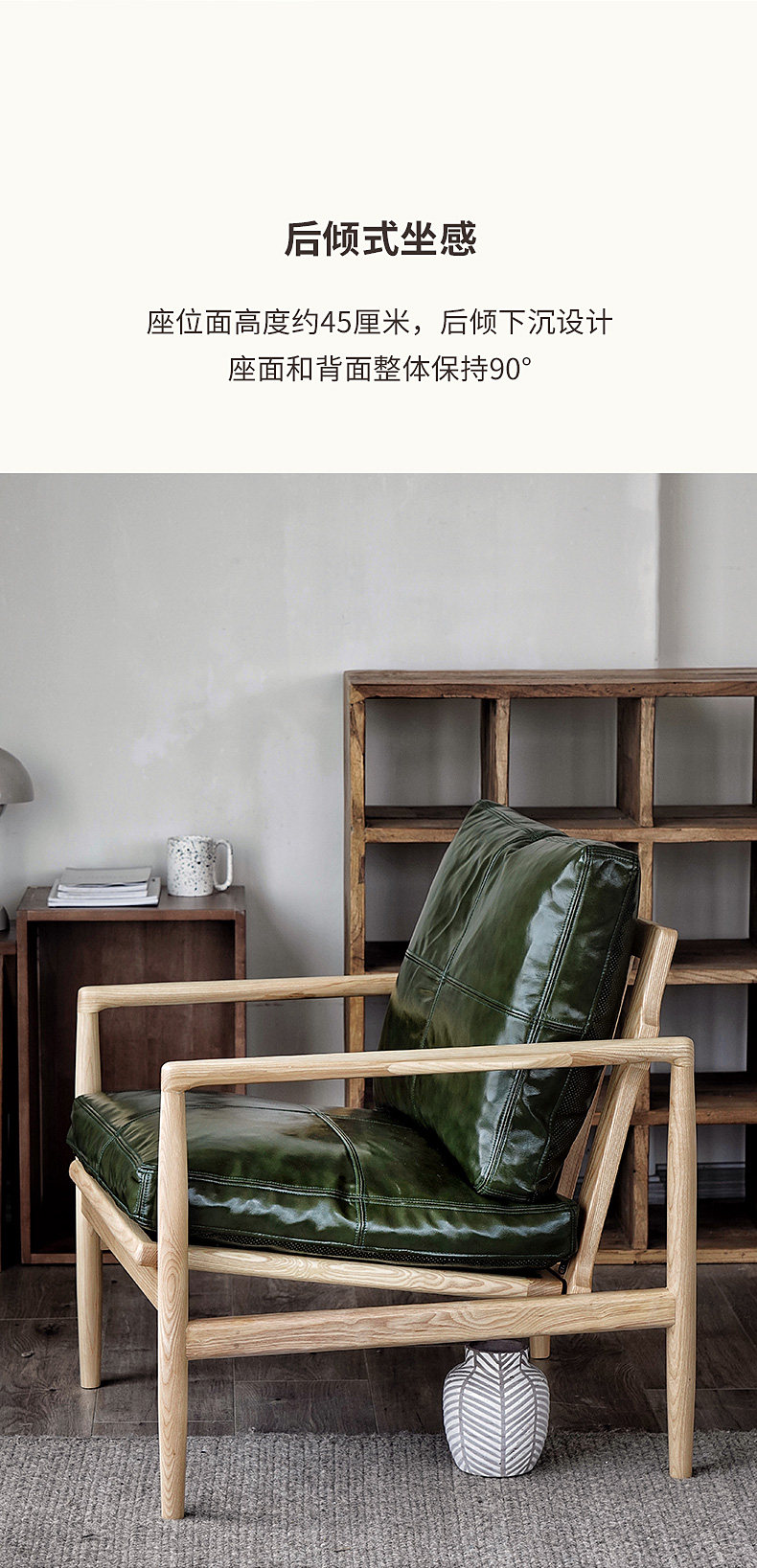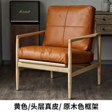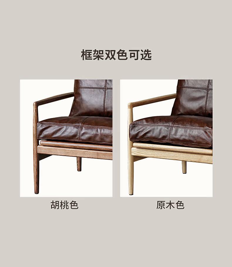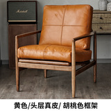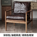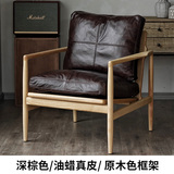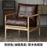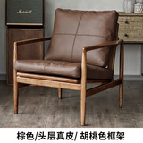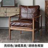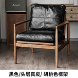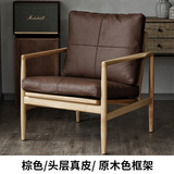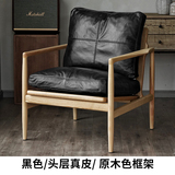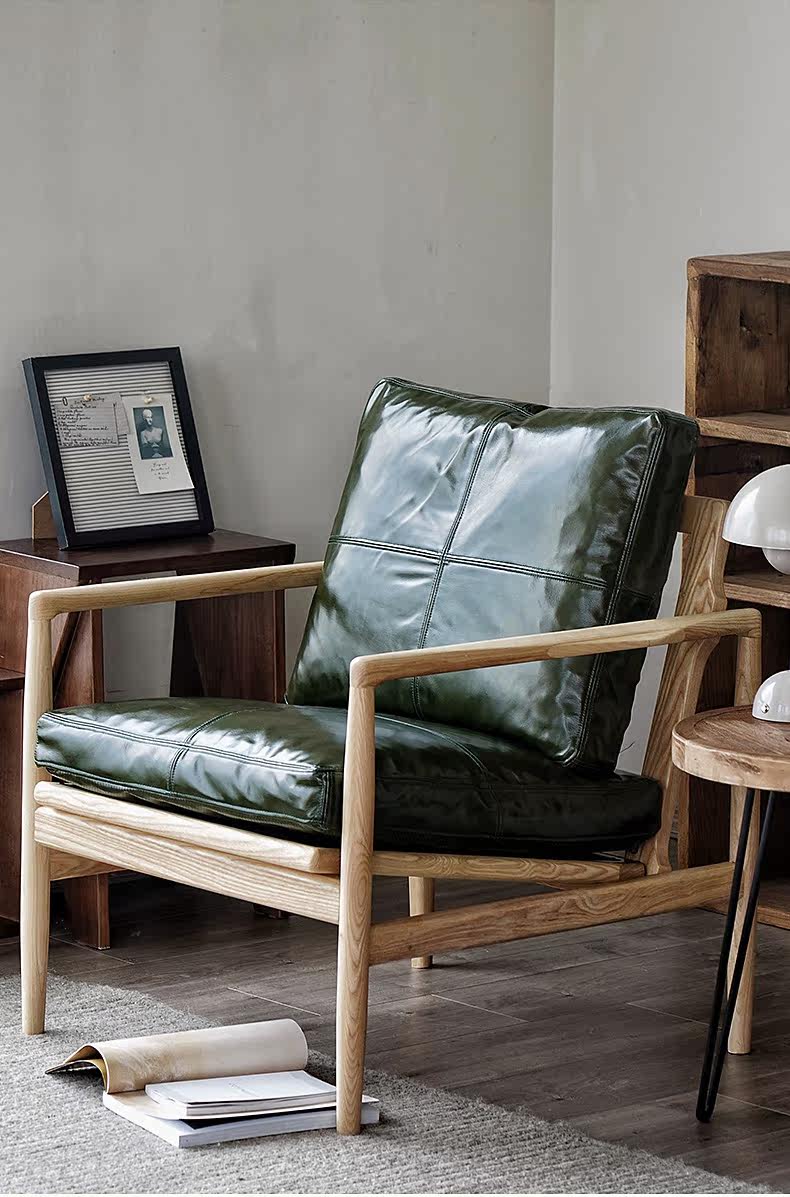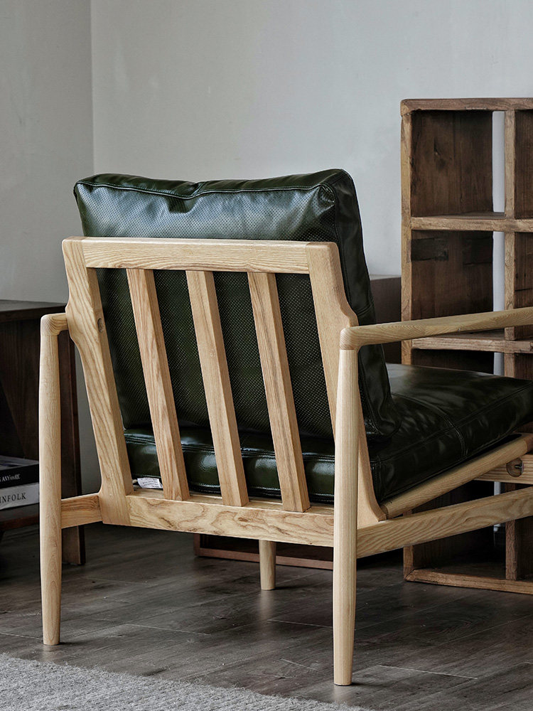 Северная кожаная кожа Hankhake Balcony диван ретро маленький квартира с твердым древесином Стул простое исследование для взрослых повседневное кресло