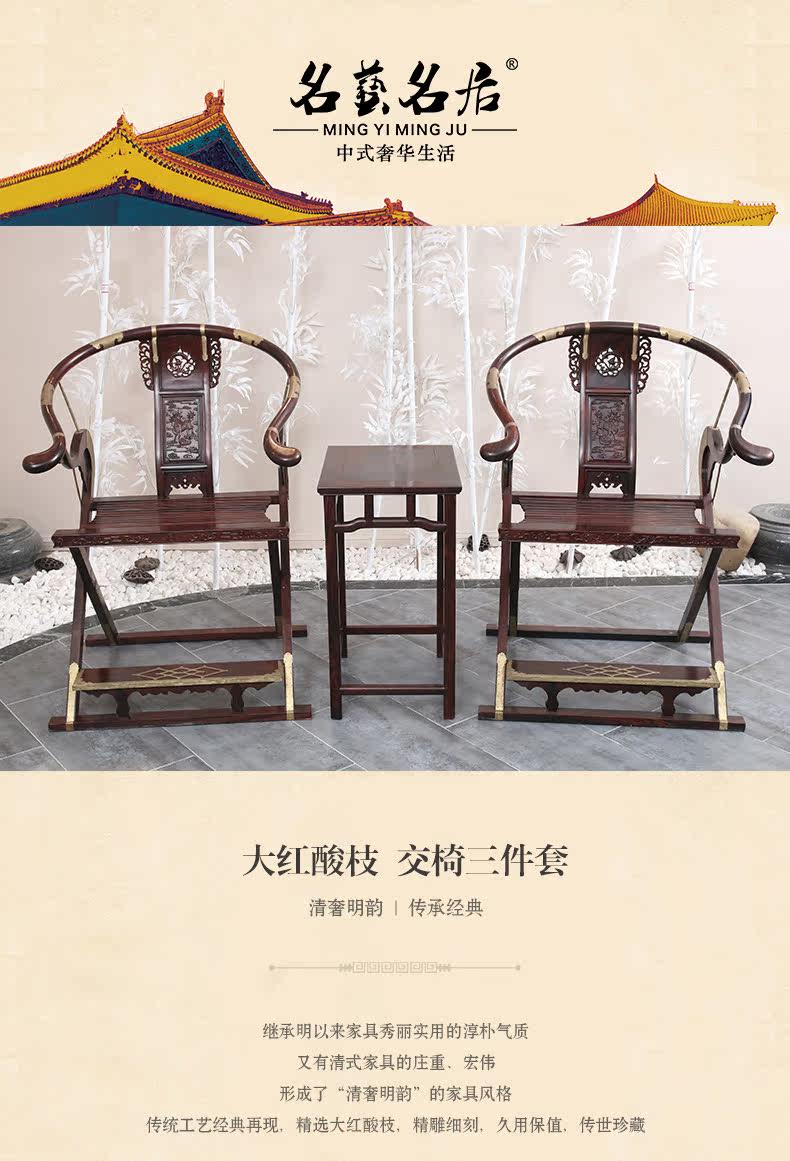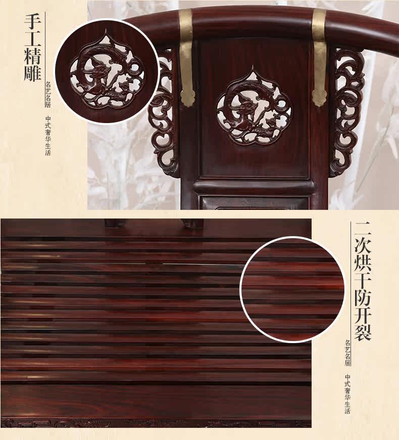 名艺名居 Три -купотка из больших красных стульев из розового дерева без борьбы с медью Luyi Mingqing Классическая мебель из красного дерева