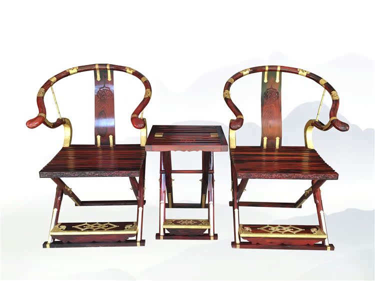 Laos Big Red Red Rosewood Jacket Rolling Copper Inlize Threepeece Majogany Furniture