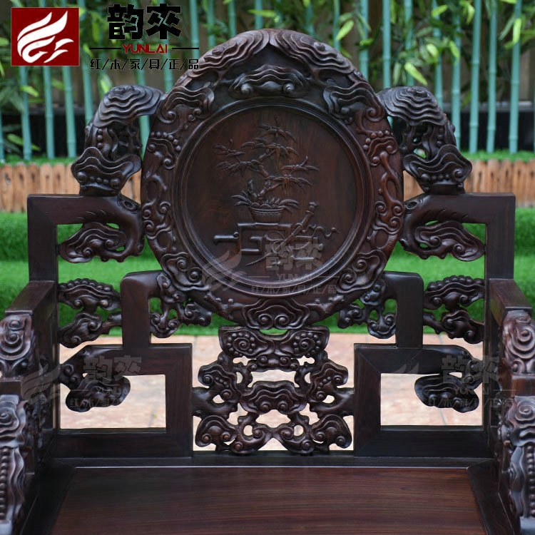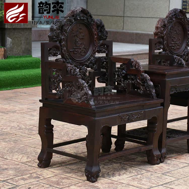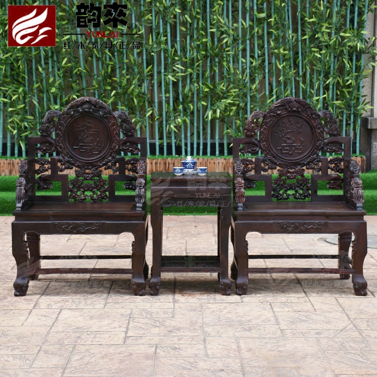 Лаос Большой Красный Розовойвуд Глубокий резные ганодерма Стул Трехлоп с твердым деревянным креслом повседневное столик и стул Античный красное дерево мебель для гостиной