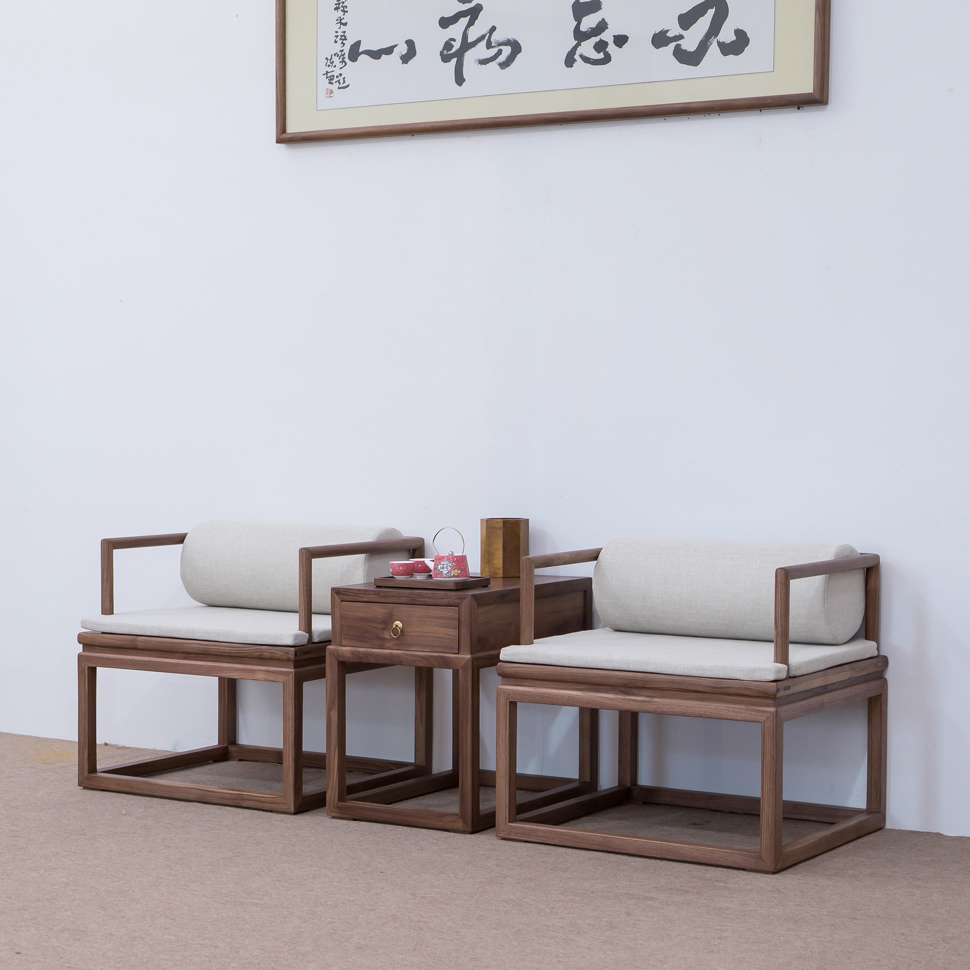Стул с твердым деревом, стул черного грецкого ореха, стул диван, новое китайское кресло с тремя чайными креслом для чая, медитационное кресло