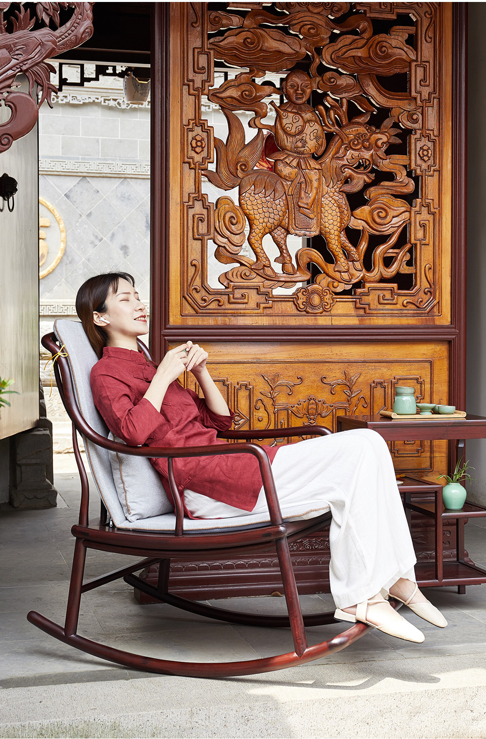 攀峰 Редвуд -качалка стулья кислый деревянный дом старый мужчина комната комната китайский стиль Xiaoyao Стул Балконы Досуг Все -Салод