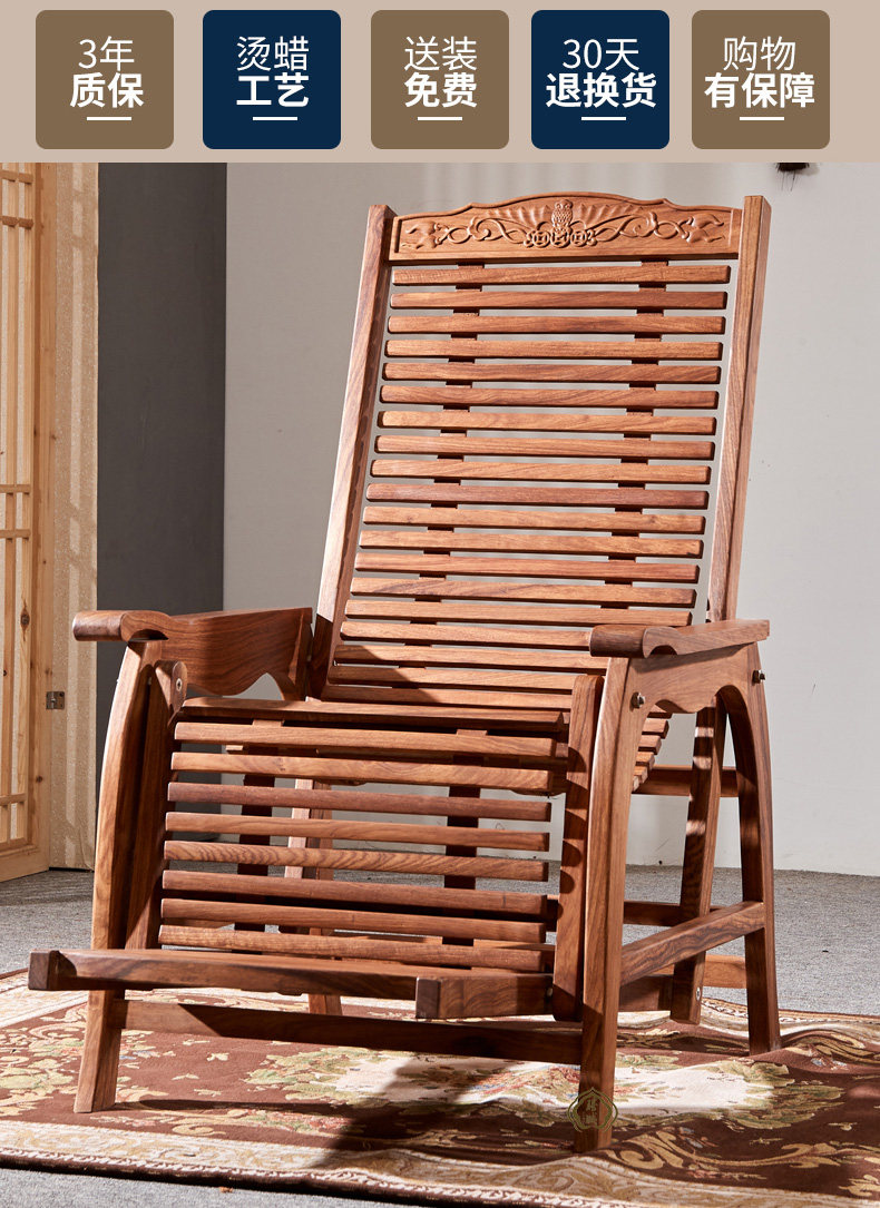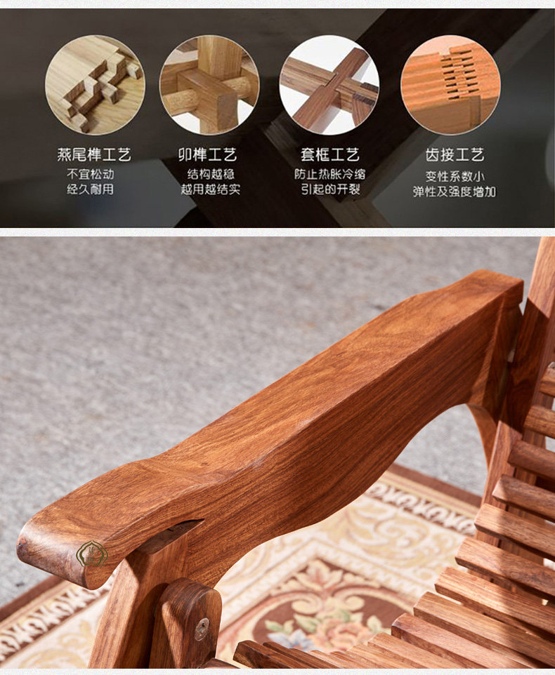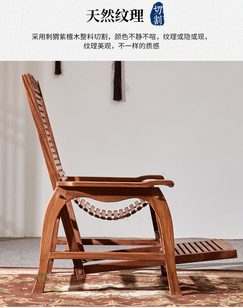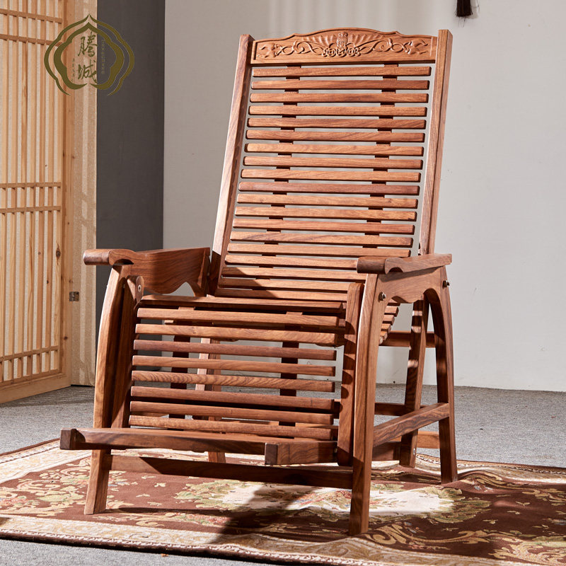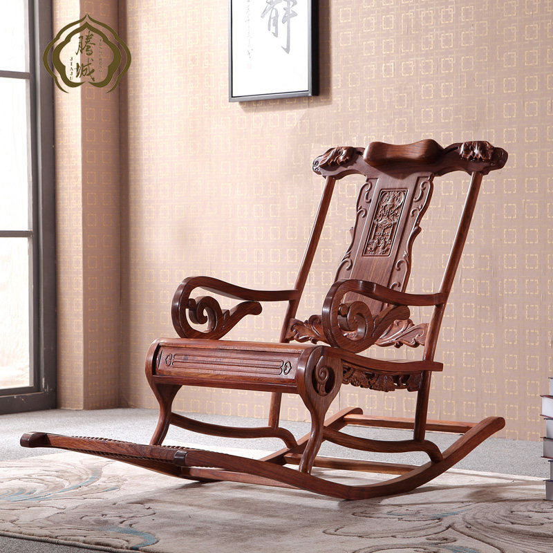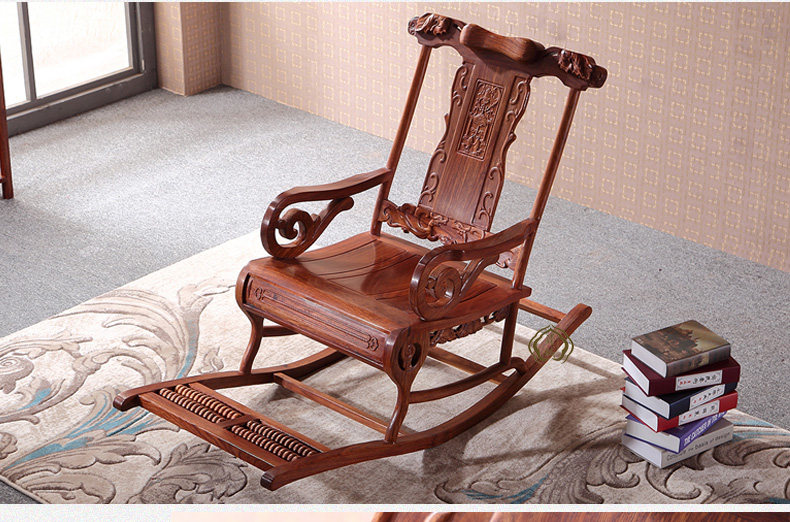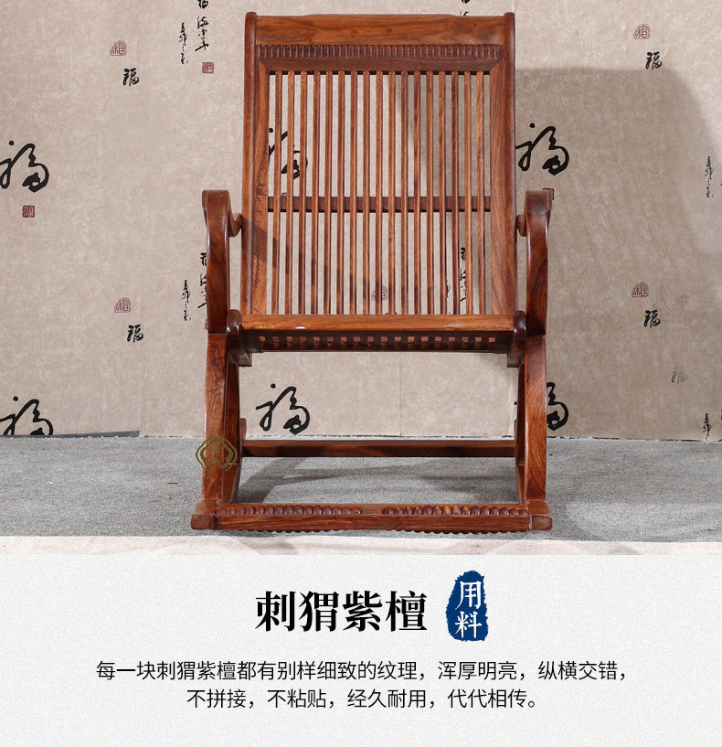 Антикварная качалка из натурального дерева из розового дерева для отдыха, складная мебель