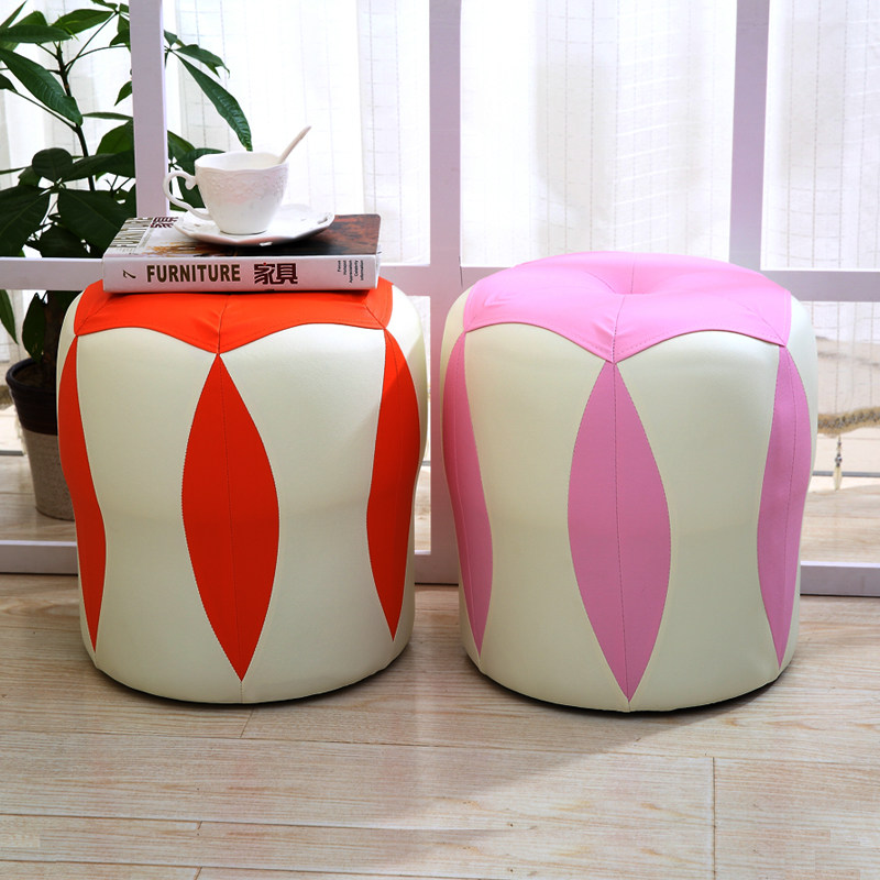 Творческий маленький стул домашний кожаный стул Мода Круглый стул гостиная для обувного табурета диван кофейный столик кофейный стул Дарф с твердым деревом.