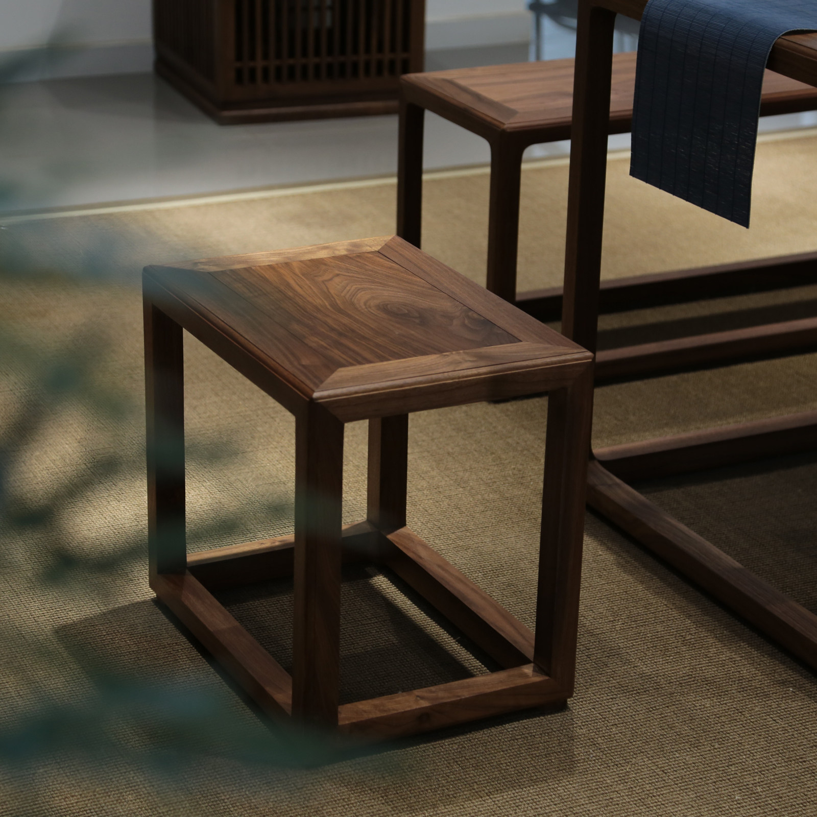 - Черный ореховый квадратный табурет
