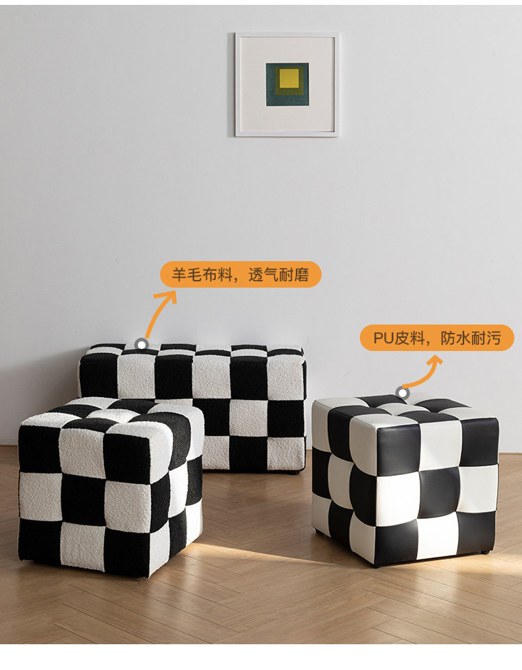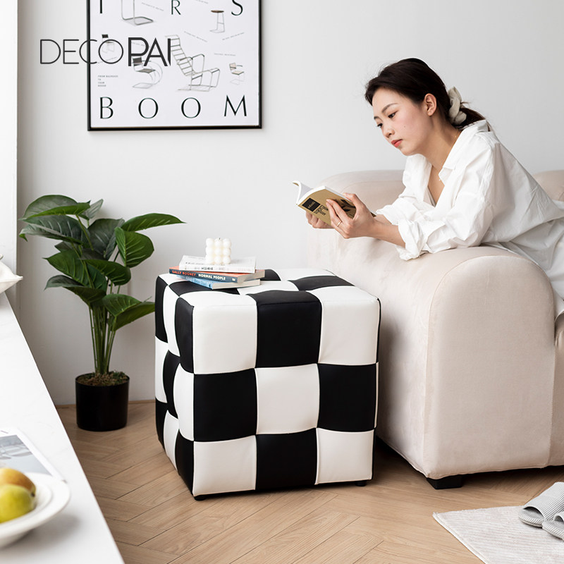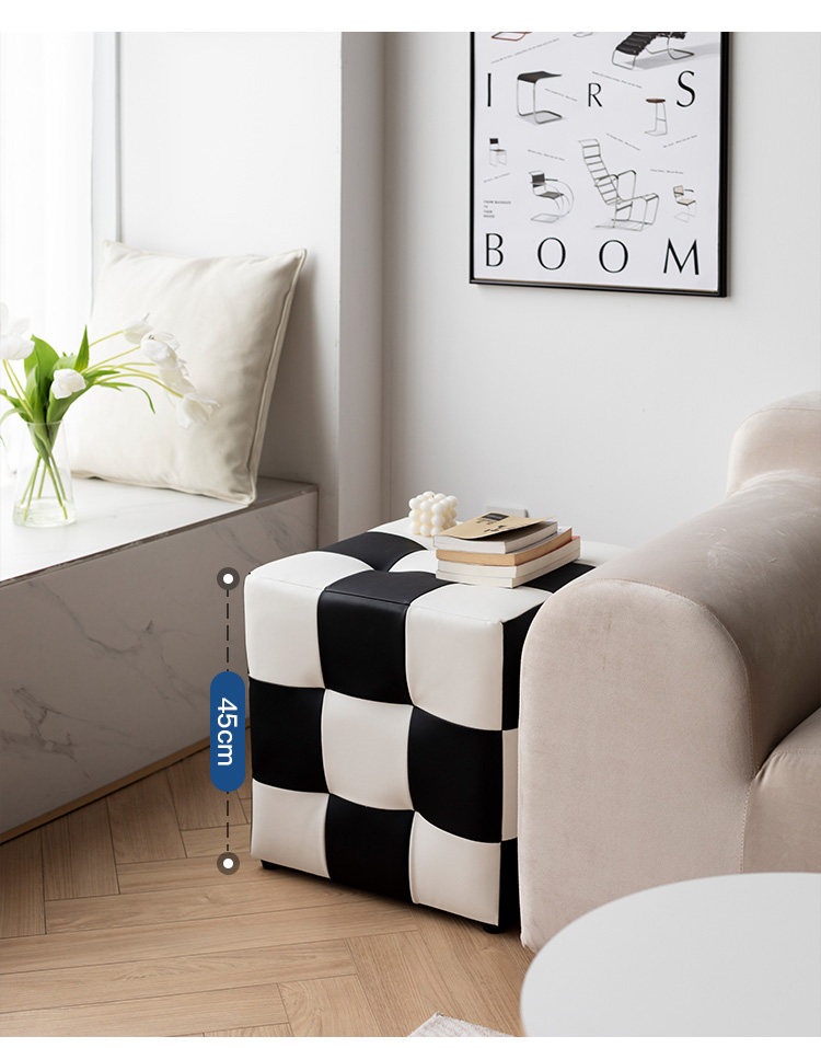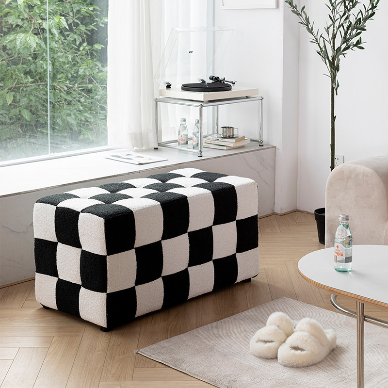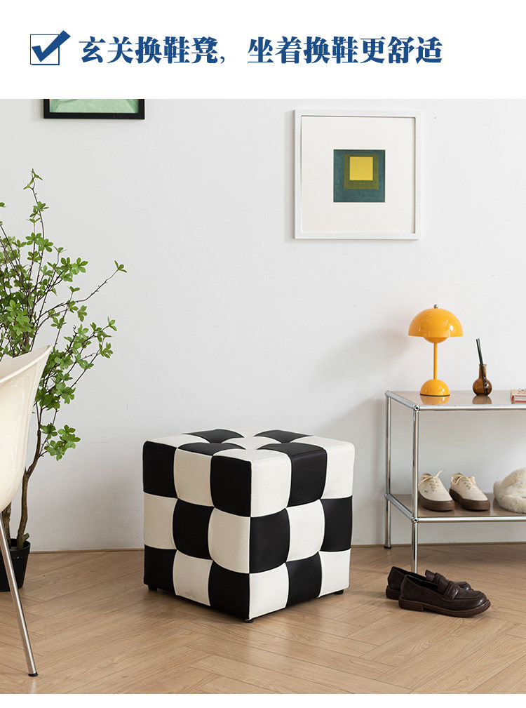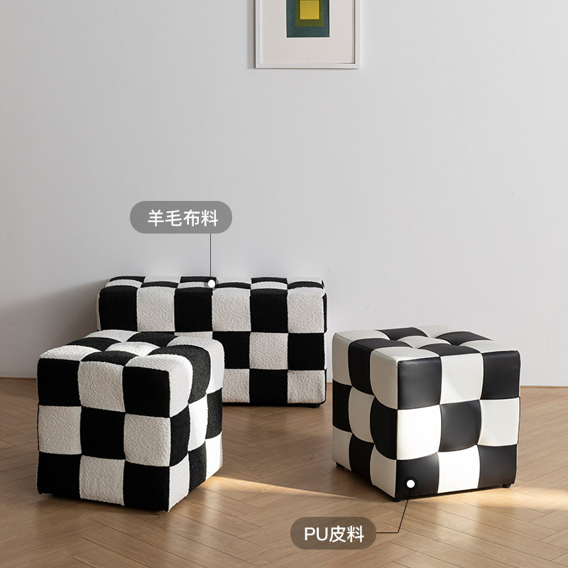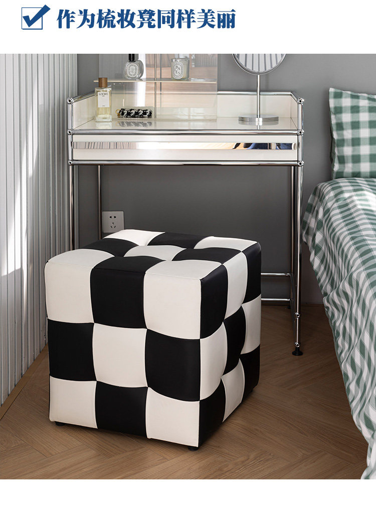 Шахматная сетка сетка сетка, смену обувные табуретки, черно -белые сетки, косметические табуретки, тушеное стул, чтобы посидеть на пирсе дварф