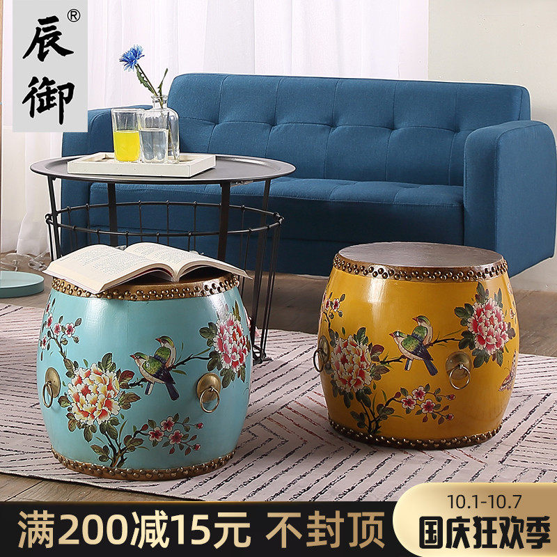 Барабанная табуретка ковакота, окрашенная в круглый стул Новый китайский настоящий Кимил вышитый пирс китайский туфли для ветра американский ветер и другие табуретки для еды