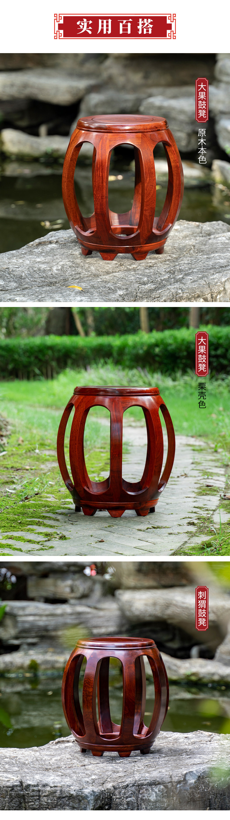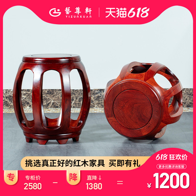 艺尊轩 Редвудская барабанная скамейка бирманского розового дерева Розовое дерево Розовое дерево нового китайского круглого стула