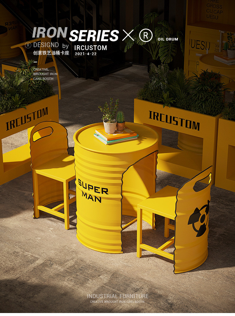 Промышленный стол ветра и стул Комбинированные сетевые красные кафе Bakbu Restaurant Bar зона отдыха на открытом воздухе.