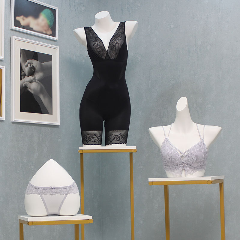 Нижнее белье, манекен головы, юбка в складку, пластиковый бюстгалтер, физиологичные утягивающие легинсы, стенд