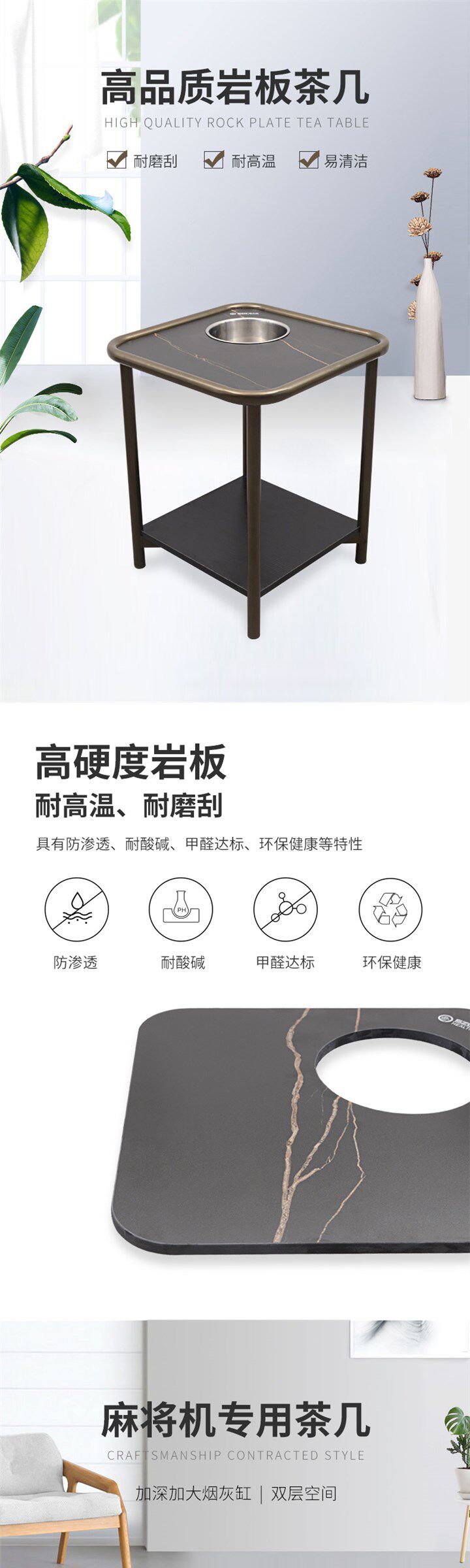 Senzhito Mahjong Tail Rock Board Tea Table Light Luxury Modern Circular Edg