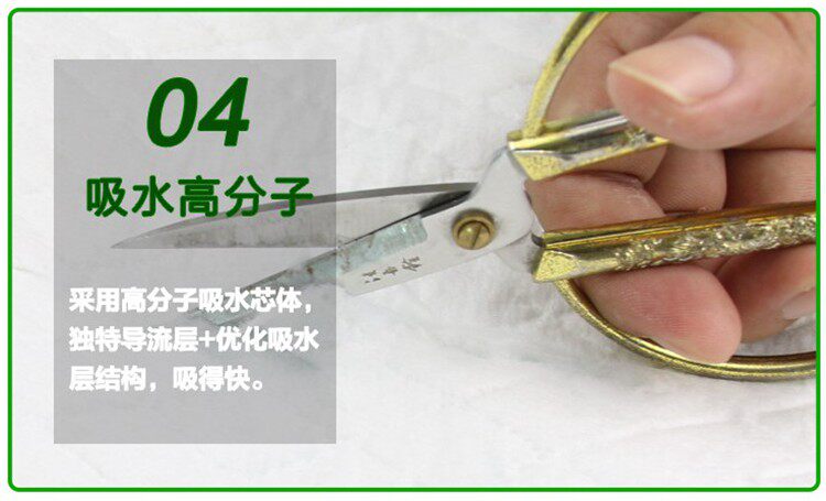 2. Полимерный поглотитель быстро поглощает запорку воды, чтобы помочь предотвратить просачивание на спине и сохранить поверхность сухой.