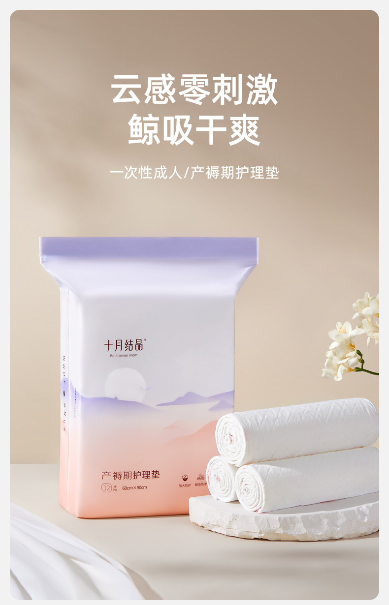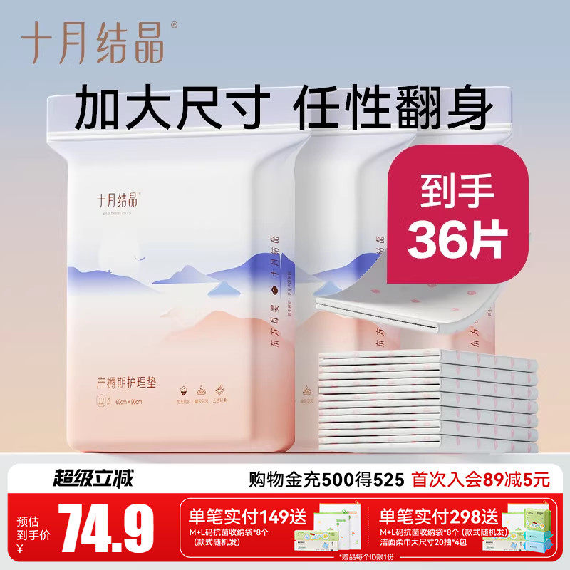 十月结晶 Одноразовая послеродовая простыня для молодой матери, большой матрас, 60×90см, 12 штук