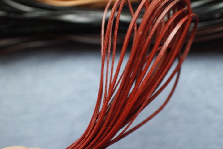 Ручный шв с плоской кожаной веревкой тканой кожа