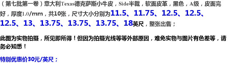 Продвижение импортировано итальянское Техас Техас Ковфид Черная Полу -обрезанная толщина 1,0 размера 10 штук