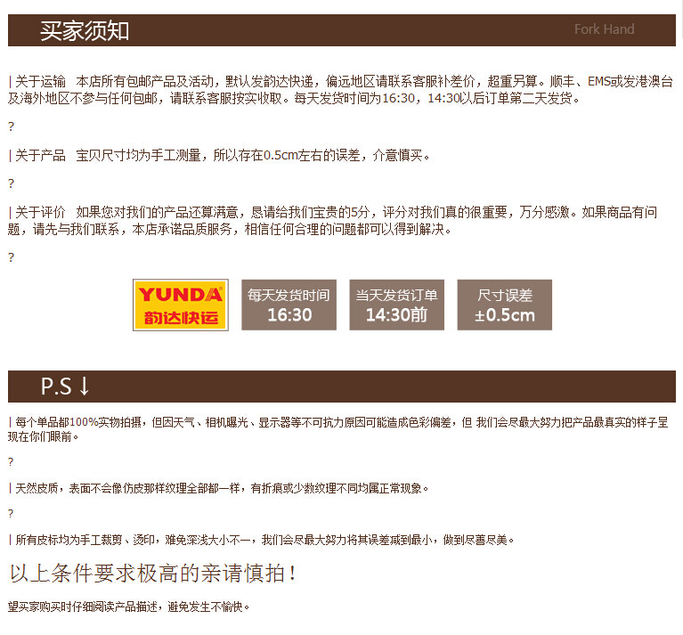 Особое внимание: второй этаж этого магазина - это кожаВесь кусокПосыпать или покрыто ПВХ и ПУ пленкой на поверхности второго слоя крупного рогатого скота, так что будут характеристики ярких цветов, равномерной окраски, меньше недостатков и нефтяного. Характерна.Поэтому, если у вас есть сомнения относительно материала, вы можете использовать более легкую, чтобы сжигать, чтобы почувствовать запах вкуса, чтобы различить подлинность материала.