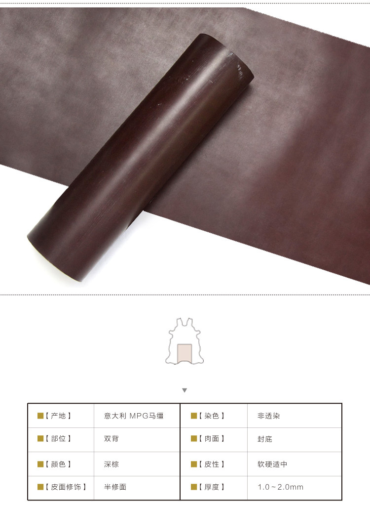 Иззор ремесленник итальянский MPG Масан темно-коричневый овощ загара кожаная головка кожи кожи 1,0-1,6 мм