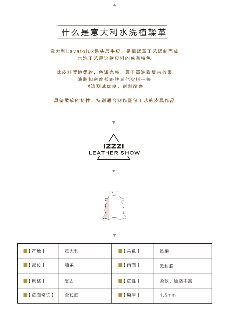 Иззорий ремесленника Итальянский импорт лаватолукса для мытья вода для мытья полоска мягкого овощного загара первого слоя материал для кожи.