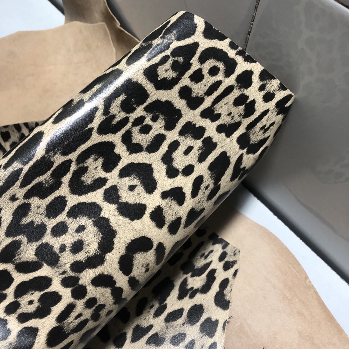 0,8-1,0 мм импортированная овчина леопардового принца с умеренным ощущением, подлинная кожаная кожа ручной работы материал