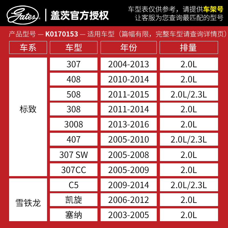 Гейтса адаптируется к 3008 Peugeot 307 Casino 408 SEGA C5 Логотип 508 Компонент ГРМ ТРИ -ПЕЧЕСКИЙ 2.0.