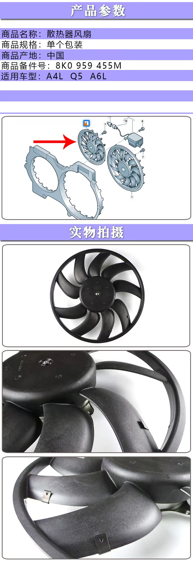 Адаптированный Audi A4LQ5A6L Охлаждающий охлаждение Электронное вентиляционное бак охлаждение бака бака B7B8B9C6C7 Большой и маленький электронный вентилятор