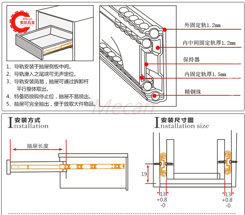 45 Ширина 12,7 Толстая выдвижная рельс.