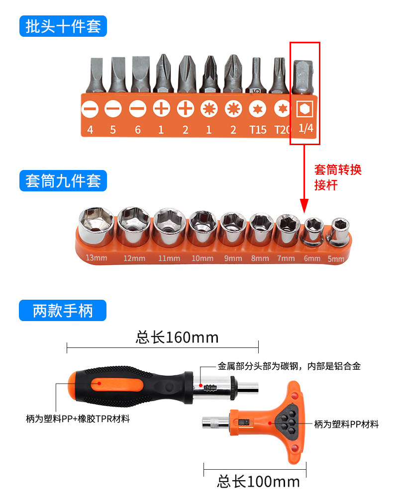 Длинная отвертка, универсальный фонарь с аксессуарами
