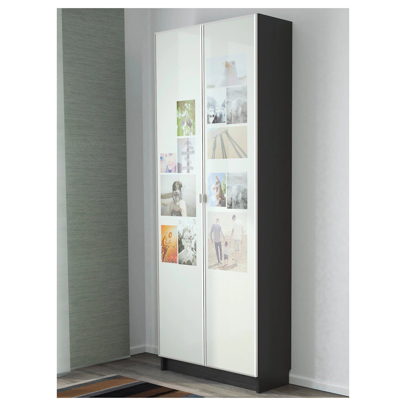 Вставьте картинки или ткань между стеклом и панелями, чтобы сделать стеклянную дверь более персонализированной.
