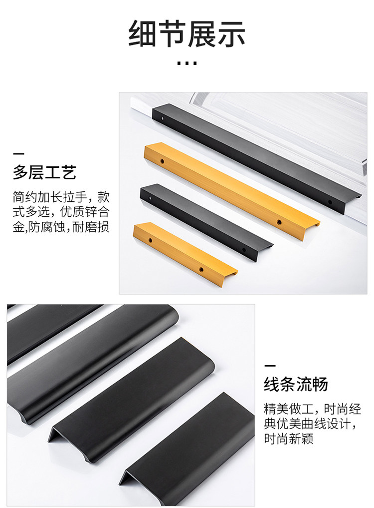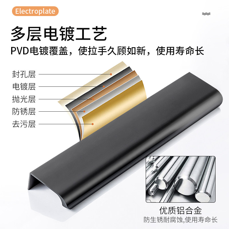 Невидимая ручка черная дверная ручка ящика с темной рукой -утянутая современная простота и удлиненный золотой шкаф