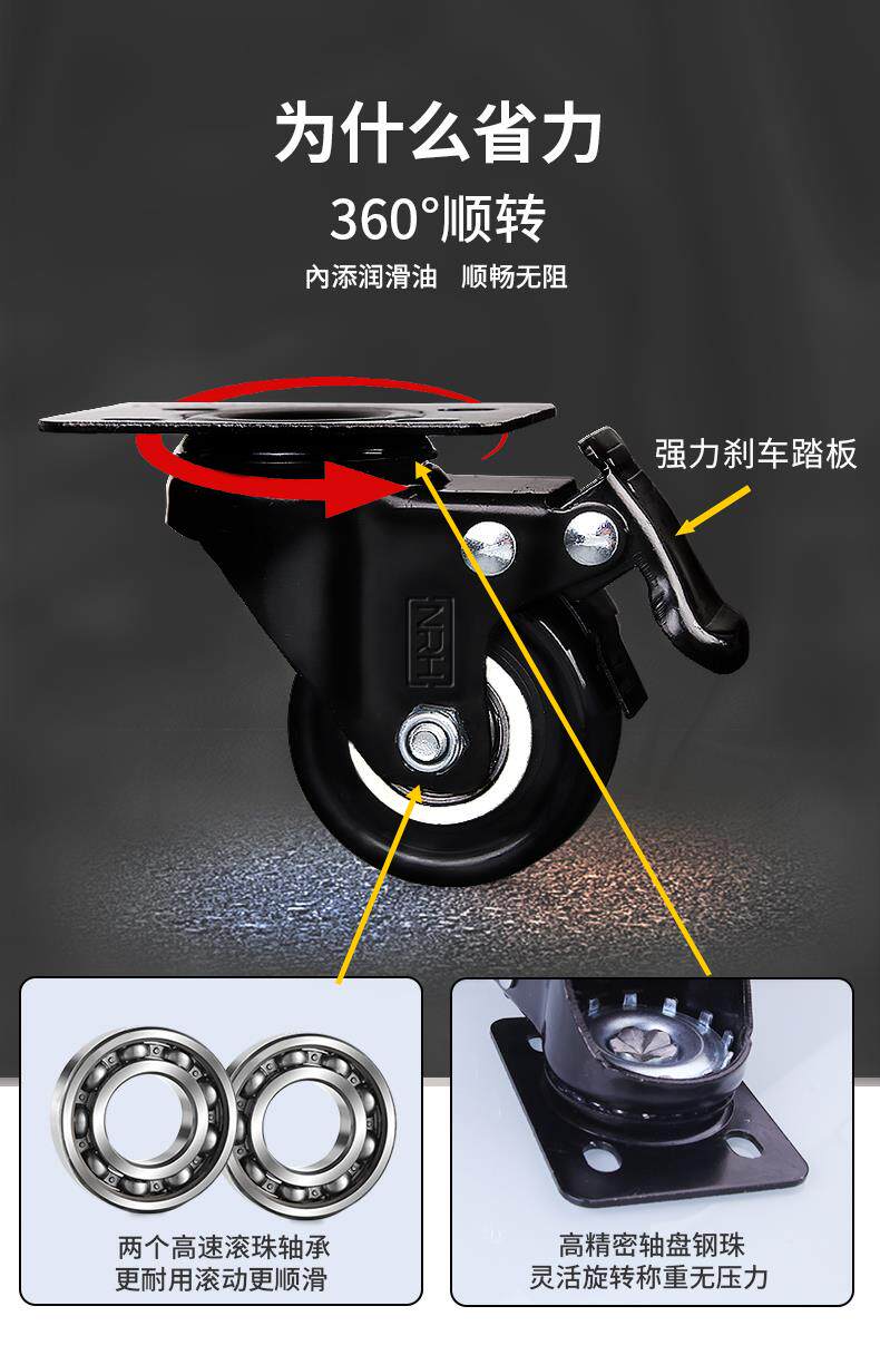 Универсальные колеса, малые кастеры с тяжелыми условиями, 1,5/2 дюйма, 3 с тормозами, безмолвное направление рулевого направления.