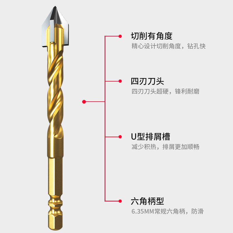 Бурение плитки с четырьмя частями удара по повелителю буровой шестиугольной ручки бетонное треугольное буровое стекло для пробивания специального транспорта
